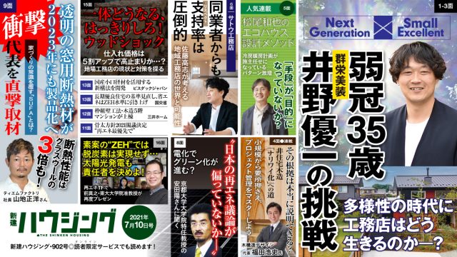 同社は事業や経営規模の拡大にとらわれず、信念をもって己が実現したい家づくりを貫きながら、同時に経営の質も高めていくことを追求している。新建ハウジング編集部では、これを「Next Generation(ネクストジェネレーション)×Small excellent(スモールエクセレント)」と呼び、その実態を深掘りした。本紙7月10日最新号の1~3面で詳報している。