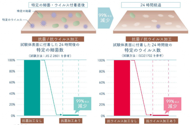 抗菌・抗ウイルス加工による効果(イメージ図)