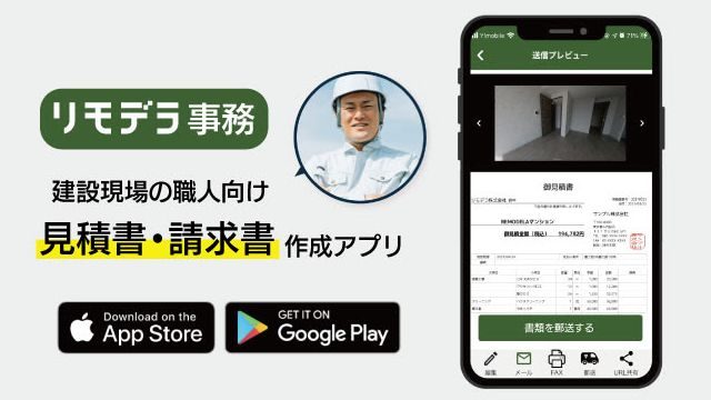 REMODELA(大阪市)はこのほど、建設現場の職人向け見積書・請求書作成アプリ「リモデラ事務」をリリースした。
