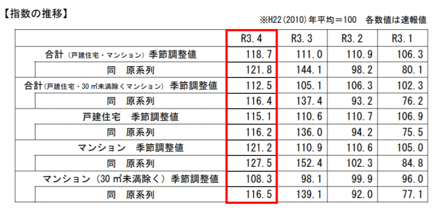 このうち、戸建住宅の季節調整値は前月比4.1%増の115.1となっている。