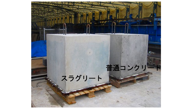 「スラグリートⓇ」は、製鉄所の副産物である高炉スラグ微粉末をセメントの代替材料として積極的に活用した低炭素型のコンクリート。コンクリート製造時における二酸化炭素の主たる排出源であるセメントの使用量を大幅に低減できるため、普通コンクリートと比較して二酸化炭素の排出量を60~70%削減できるという。コンクリートの流動性や圧送性など、フレッシュコンクリートとしての性状は一般的なレディーミクストコンクリートと同様で、普通コンクリートと同じく打設可能。マスコンクリートに同技術を使用することで、普通コンクリートと比較して温度ひび割れの低減効果が期待できるという。