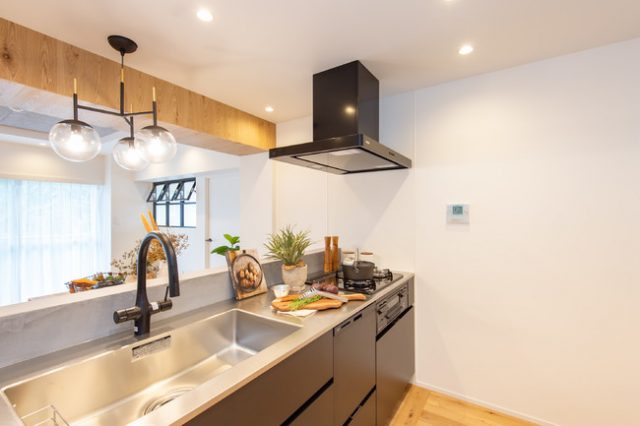 現在販売中のパシフィック白金台は、専有面積53.46m2。明るい窓に面したLDKは人を招いたり、在宅勤務に対応できる十分な広さ。ステンレスの天板にダークグレイの扉、大きなシンクのオーダーキッチンは同ブランドのオリジナル。玄関、水回り、トイレの床はタイルで統一し、高級感のある仕上がりになっている。