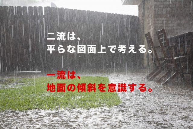 そうすると先輩は「そら常識やろ!」という顔で「外構・造園入れてたら見積もり遅なるし、だいたい予算オーバーで契約取れへんで」と間髪入れずの回答でした。当時ぜんぜん契約の取れなかった私には非常に納得できるというか、変に説得力のある回答でした。