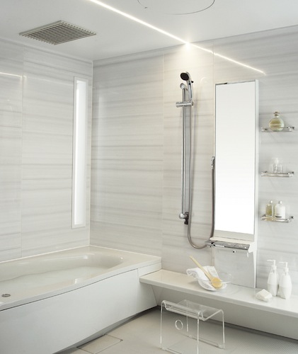 新商品は戸建て住宅用からマンションリフォーム用までラインナップを拡大。これまで高級グレードのみで展開して好評だった「酸素美泡湯」を全クラスで対応できるようにするほか、シャワーの熱で鏡のくもりを抑える「湯たんぽミラー」機能、節水ができる浴槽形状の「リクライン浴槽」などを新たに提案する。
