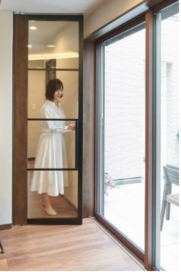 前後両方向に開閉するスイング機能を持ったドアで、扉の四方の隙間が空間の通気量を増やして多くの空気を各部屋に行き渡らせることができる。空調されていない部屋がないZ空調搭載の住宅に最適という。