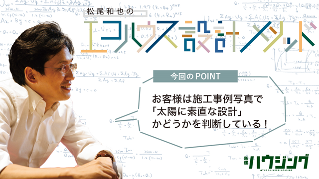 松尾和也さん流エコハウス設計メソッドを毎月10日号でお届けする本連載。 今回のテーマは竣工写真。写真からでも、エコハウスづくりのレベルが見抜かれてしまうというお話です。