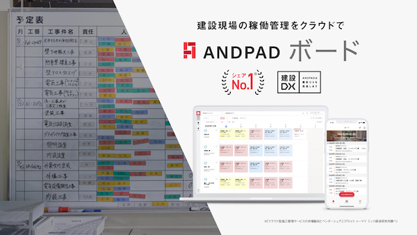 アンドパッド(東京都千代田区)は、短時間工事に特化した建設現場の稼働管理アプリ「ANDPADボード」を発売した。