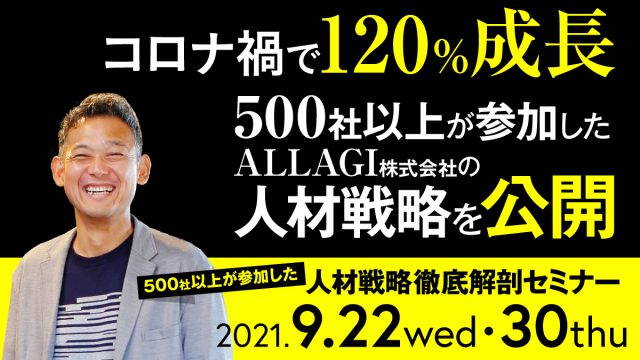 建築コンサルティング・人材コンサルティングを手掛けるラスト・コンパス(大阪市)は、コロナ禍でも成長を続ける住宅会社ALLAGI(アレジ、大阪府和泉市)の成長戦略を公開するオンラインセミナー「人材戦略徹底解剖セミナー」を9月22日、30日に開催する。