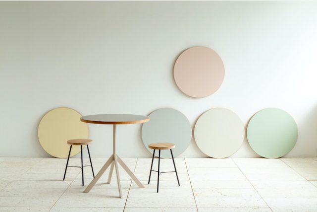 洗練されたパステルカラーの天板と落ち着いたサンドベージュのアイアン脚が特徴で、天板にはファニチャーリノリウムを用いた。ファニチャーリノリウムは、アマニ油を主原料とした自然素材から作られた建築素材で、抗菌・抗ウイルス作用や脱臭効果があるという。全6色。アイアン脚のみの購入も可能で、DIYでカフェテーブルを製作したいと考えているユーザーの需要も見込む。