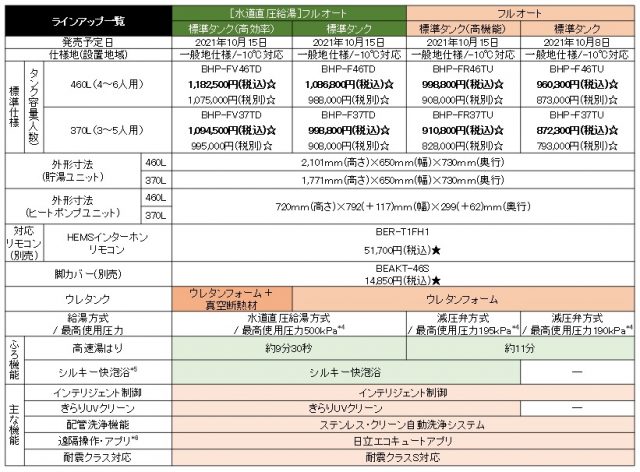 日立グローバルライフソリューションズ(東京都港区)は10月、年間給湯保温効率4.2の家庭用エコキュート8機種を発売する。