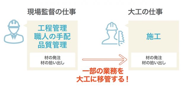 現場監督を、現場管理に集中させるにはどうすればいいか。佐藤さんが着目したのは大工の存在だ。木造住宅の現場で中心的な役割を担う大工の仕事に「監督の業務の一部を組み込む」ことで、余計な業務を監督にさせないようにした。