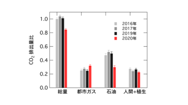 産業技術総合研究所(産総研、茨城県つくば市)は、防衛大学校(神奈川県横須賀市)、明星大学(東京都日野市)と共同で、大気観測により、新型コロナウイルス感染拡大に伴う2020年4~5月の緊急事態宣言期間における代々木街区の二酸化炭素(CO2)排出を排出源別に評価した。