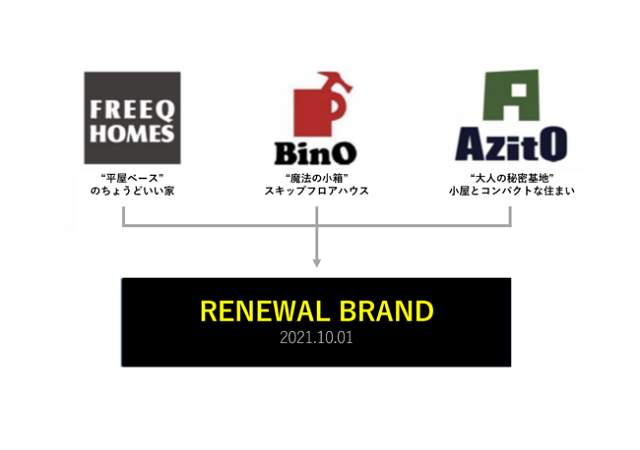 今回統合されるのは、スキップハウスフロア「BinO」、“平屋ベース”のちょうどいい家「FREEQ」、小屋とコンパクトな住まい「AzitO」の3ブランド。新ブランドは「すべての方にわかりやすく 自分らしさを大切に、ワクワク感や遊びゴコロある暮らしのなかで、家族や仲間をつなぐライフスタイルブランド」をコンセプトに展開する。好きなコトに夢中になれるなど、普段の生活を大切にできる「夢のマイホームではなく、夢のためのマイホーム」を提供していく。