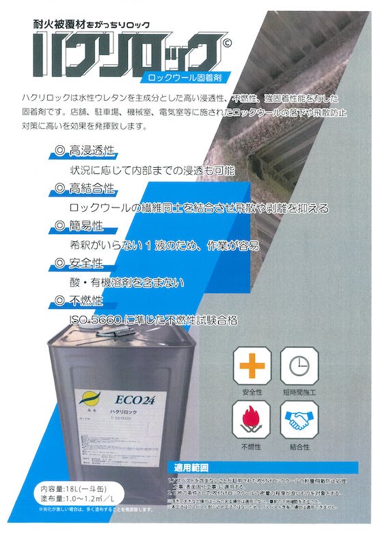 エコ・24(横浜市)は、耐火被覆材として使われるロックウールを固着する「ハクリロック」を発売した。