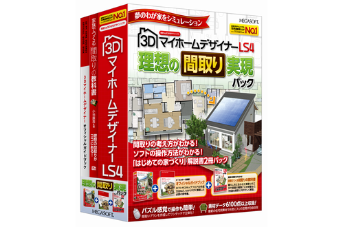 メガソフト(大阪府吹田市)は5月25日、間取りの基本とソフトの操作を学べる解説書2冊を付属した住宅デザインソフト「3DマイホームデザイナーLS4 理想の間取り実現パック」を発売する。