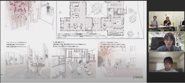 昨年に引き続き、参加学生と審査会場をZoomウェビナーで結ぶオンライン開催を実施。審査員7人が全国から提出された作品202組から受賞作品を選出し、上位10作品およびU20賞に選ばれた学生のプレゼンテーションが行われた。3分のプレゼン動画を流したあとの質疑応答では、審査員からの鋭い質問やアドバイスと、それに答える学生との真剣なやりとりが見られた。こうしたやりとりに加え、審査員の間で意見が割れるのも同コンテストの面白さとなっている。審査する側とされる側の真剣さと建築への熱意が、オンラインでも伝わる審査会となった。