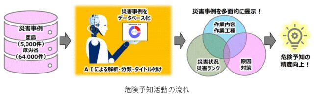 鹿島(東京都港区)は、建設業・製造業のDXを支援するUNAIIT(愛知県名古屋市)と共同で、AIを活用し建設現場における類似作業の災害事例を見える化したシステム「鹿島セーフナビ(K-SAFE)」を開発した。