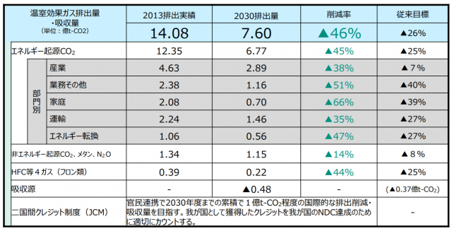 政府は「2050年カーボンニュートラル」宣言、2030年度46%削減目標等の実現に向け、計画を改定した