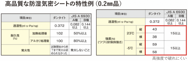 ◉一般に防湿気密シートは性能と価格、重さで選択。性能面では破れづらい0.2mm厚が優れているが重いのが難点