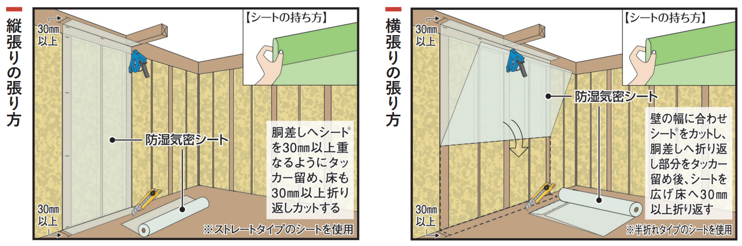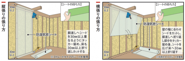 防湿気密シート② 継ぎ目は横張りのほうが少ない
