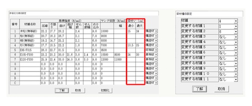 ウッドショックにより、複数の材種で構造計算をする必要が出てきたことを受けて新機能を追加。これまでは2種類の材種で算定していたが、最新バージョンでは、複数の材種別に梁せいの範囲を設定できるようにした。例えば、梁せい210までベイマツ、300までE120、450までLVLといった設定が可能に。これにより、算定計算/検定計算による梁部材の材種/材寸の選定の手間を省力化する。