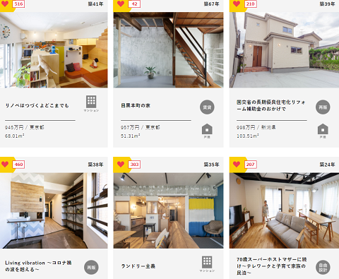 「リノベーション・オブ・ザ・イヤー2021」ノミネート作品の一例(1000万円未満部門)