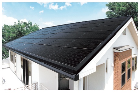 屋根一体型のため、新築時には屋根と太陽光発電パネルの設置を1回で完了できるのが特徴。モデルチェンジの主な内容としては、これまでは物件ごとに寸法設定が必要だったケラバ部材をオールアルミの成型品とし調整を不要としたり、板厚を0.8mmに倍増し表面の均整をとりやすくした。軒先から棟、ケラバに至るまで統一パーツのため、屋根面がフラットで太陽電池が目立たないシャープな仕上げを実現する。