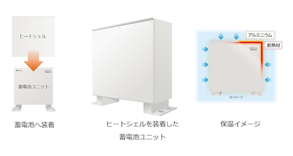 断熱材とヒーターを内蔵。温度センサーで気温の低下を感知すると自動で蓄電池ユニットを温め、0℃以上になるよう保温する。