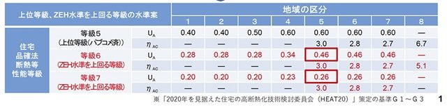 脱炭素社会に向けた住宅・建築物の省エネ対策等のあり方検討会などで議論されてきた住宅の脱炭素施策が、実現に向けたフェーズに入った。国土交通省、経済産業省、環境省の3省は11月4日の合同会議で、各種基準の見直しに着手。住宅性能表示制度の断熱等性能等級に、さらなる上位等級として、HEAT20・G2、G3相当の等級6・7を新設する考えを示した。