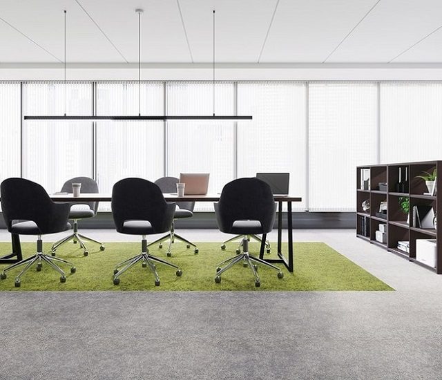 同商品では、「NT 700」で人気の7柄50点を、デザイン・価格はそのままに、パイルを原着ナイロン(6.6ナイロン)100%からリサイクル原着ナイロン100%に変更した。表面のパイルには漁網やカーペット廃材などを使用した100%リサイクル糸「エコニール」、裏側のバッキング材にはリサイクルパウダー入りPVCを採用することで、CO2排出量を削減。高い意匠性とさらなる環境負荷低減を実現する商品として、オフィスや商業施設などで幅広く使用できる。