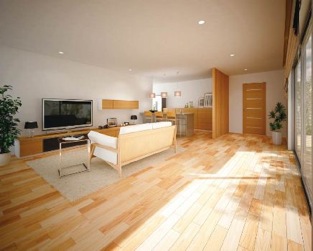 床材は木材組織にプラスチックを注入・充填し、硬化させる独自技術を採用しており、木肌感と傷・汚れのつきにくさを両立。水まわりやホットカーペット、床暖房にも対応する。