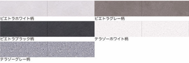 ラインアップは、ピエトラホワイト・ピエトラグレー・ピエトラブラック・テラゾーホワイト・テラゾーグレーの全5種。価格は1万1671円/m2(税込)。