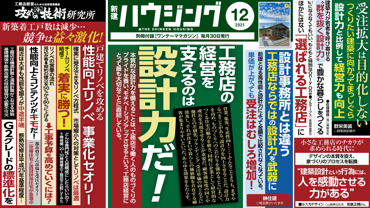 新建ハウジングは11月30日、ワンテーママガジン最新号「工務店の経営を支える設計力」を発行した。