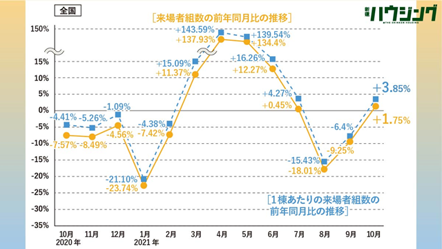 住宅展示場協議会(東京都港区)と住宅生産振興財団(同)が11月17日発表した10月の住宅展示場の来場者組数は、対前年同月比プラス1.75%の31万4780組となり、3カ月ぶりの来場増となった。 エリア別では・・・ ⇒ この記事は定期購読者限定の記事です。続きは、最新号『新建ハウジング紙面 11月30日号 7面』に掲載しています。