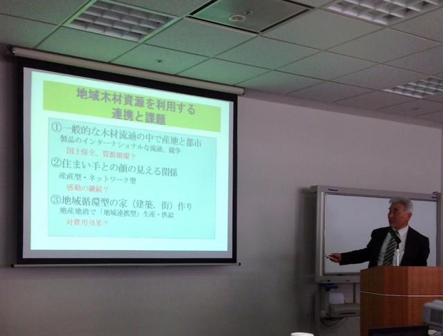 当日は、山田理事長の挨拶に続き、「地域・木材・住まい・環境」と題して東京大学名誉教授・有馬孝禮氏が講演。マウスの生存実験の本質的な読み方をはじめ、豊富なデータをベースに、木と木の家のメリットを、研究者の視点で読み解いた。
