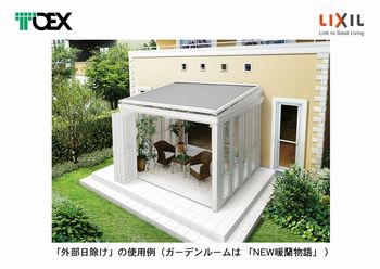 LIXIL(東京都千代田区)は6月1日、TOEXブランドからガーデンルームの新アイテムとして「外部日除け」と「換気パネル」を発売する。