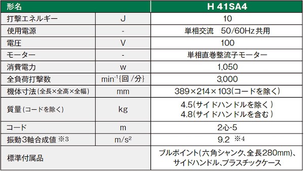 工機ホールディングス(東京都港区)は12月、電動工具ブランドのHiKOKI(ハイコーキ)から、コンクリートのハツリ・破砕に使う「ハンマ H 41SA4[六角シャンクタイプ]」を発売した。