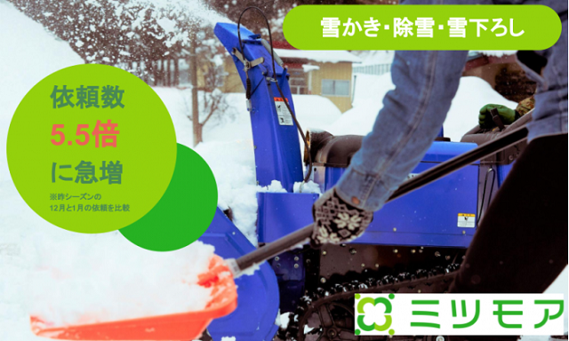 見積もりプラットフォーム「ミツモア」を運営するミツモア(東京都千代田区)は、今季の大雪に備えた体制として、リフォーム業・建設業者の「雪かき・除雪・雪下ろし」サービスへのプロ登録を強化する。プロ登録を増やすことで、転落などの危険性のある雪下ろし作業をプロに依頼するという消費者の選択肢を増やす。またこの時期、リフォーム・建設業者にとっても比較的手すきとなることが多いとして、冬期の間の事業の一つに加えて欲しいと提案している。