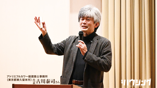 新潟県内の工務店や設計事務所などが学び合うコミュニティ・住学(すがく)は、メンバー間で県産材を積極的に活用していこうと11月30日、長年にわたり林産地と一体となった家づくりを手掛けるアトリエフルカワ一級建築士事務所(東京都東久留米市)代表の古川泰司さんを講師として招き、新潟市内でオンラインとあわせたセミナーを開催した。古川さんの講演のほか、住学の立ち上げ人でサトウ工務店社長の佐藤高志さんのコーディネートにより、住学メンバーで建築家として活動しながら林業・製材所を経営する石田伸一さんと古川さんのパネルディスカッションも行い、持続的に県産材を活用していく川上(林業)・川中(製材)・川下(設計事務所・工務店)の連携のあり方について考えた。