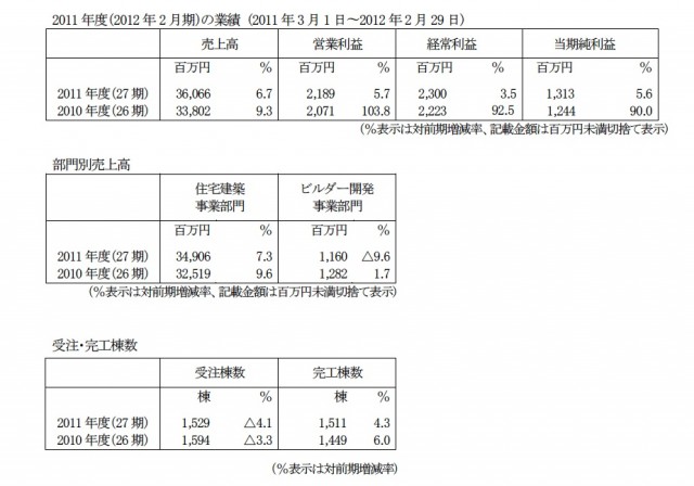アキュラホーム(東京都新宿区)は2011年度(12年2月期)の業績を発表。それによると売上高は前期比6.7%増の360億6600万円で、94年度以来18期連続の増収を達成した。