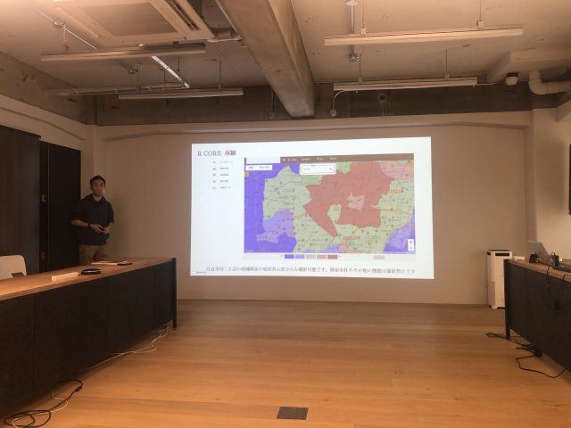 体験会で「R CORE」について説明する経営企画本部の間多洋彰さん