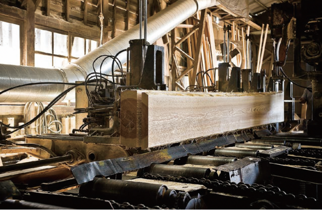 良質な丸太に手を掛けて性能設計が可能なJAS製材に仕上げていく