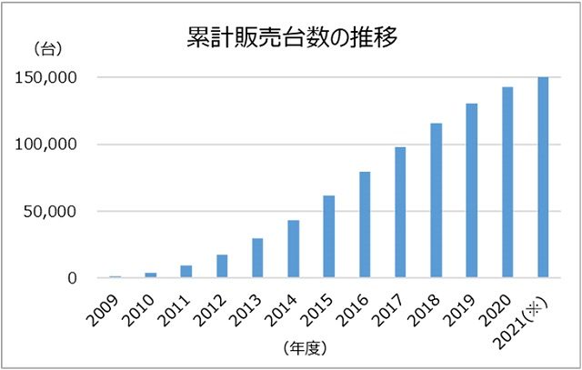 2021年12月時点の販売台数(2008年度末までの大規模実証分 約800台を除く)