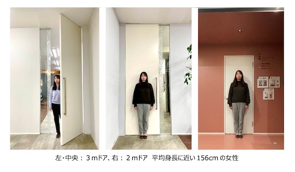 天井高が3mある住宅に対応するハイドアを開発。一般的なドアの約1.5倍の高さとすることで、部屋全体に開放感が生まれるとする。