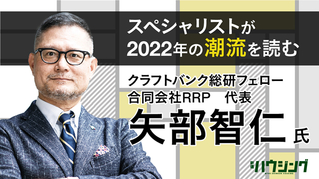 2022年の住宅市場はどのように動くのか。その市場に対応するために家づくりや経営・組織は何をすべきか。各分野のスペシャリストの視点から潮流を読む。クラフトバンク総研フェロー、合同会社RRP代表の矢部智仁さんにお話を伺った。