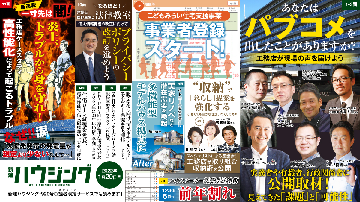 昨年末から年始にかけ、住宅・建築物の省エネ化施策に関する複数のパブコメが実施されました。それを受け、新建ハウジングでは2021年12月、脱炭素化に貢献する住宅の普及拡大を念頭に置きながら、パブコメをメインテーマとする公開取材を実施。