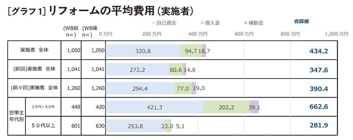 実施者のリフォームにかかった費用(平均費用)