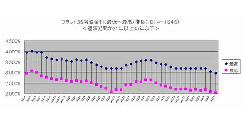 住宅金融支援機構は、各金融機関の長期固定住宅ローン「フラット35」の2012年6月の金利水準を発表した。