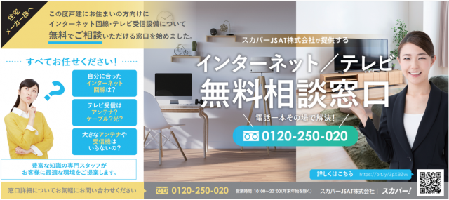 スカパーが運用する「インターネット・テレビ無料相談窓口」はこのほど、ポラスグループと連携して新築戸建ての契約を結んだ顧客や、過去に同社で新築した顧客を対象とするサービスを展開。顧客の要望や契約状況をふまえ、無料で専門窓口のオペレーターが、最適なテレビ受信方法や光回線サービス、契約形態を提案する。