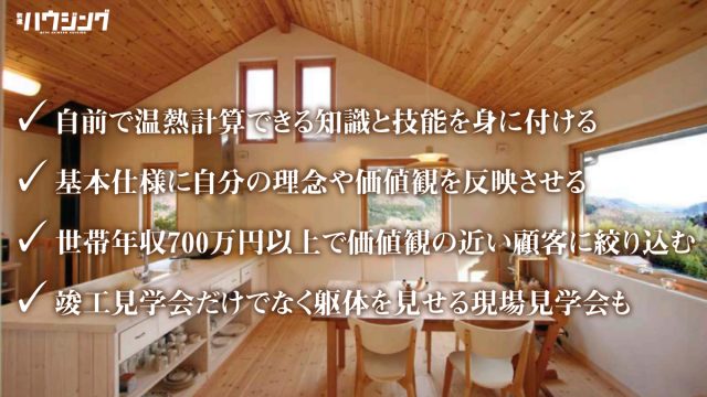 「ナノ工務店の大きな問題点の1つが、『注文住宅=建て主の言う通りにつくること』と勘違いしていること。ほとんどの建て主は建築に関しては素人であり、要望通りにつくると建物性能や使い勝手、美観などに問題が生じる場合がある。結果として、満足度が低くなり、それをつくった工務店の評価まで下がってしまう」と吉田さんは説明する。